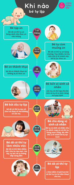 Các cột mốc thời gian giúp bé rèn luyện tính tự lập mà các mẹ nên lưu ý. Ảnh: Cộng Đồng Bầu