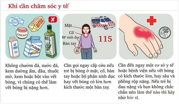 Các trường hợp bé cần đến cơ sở y tế khi bị bỏng
